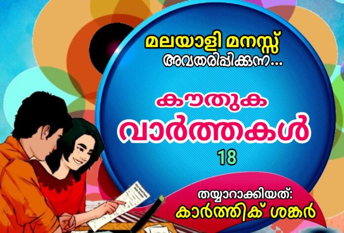 ‘കൗതുക വാർത്തകൾ’ (18) ✍തയ്യാറാക്കിയത്: കാർത്തിക് ശങ്കർ