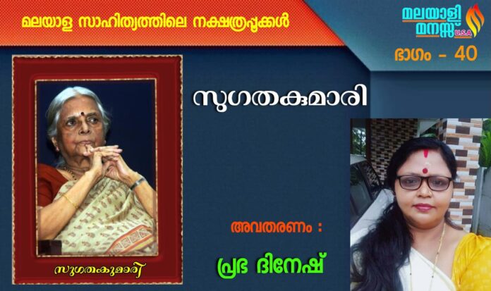 മലയാള സാഹിത്യത്തിലെ നക്ഷത്ര പൂക്കൾ (നാൽപ്പതാം ഭാഗം) ‘ സുഗതകുമാരി’ ✍ അവതരണം: പ്രഭ ദിനേഷ്