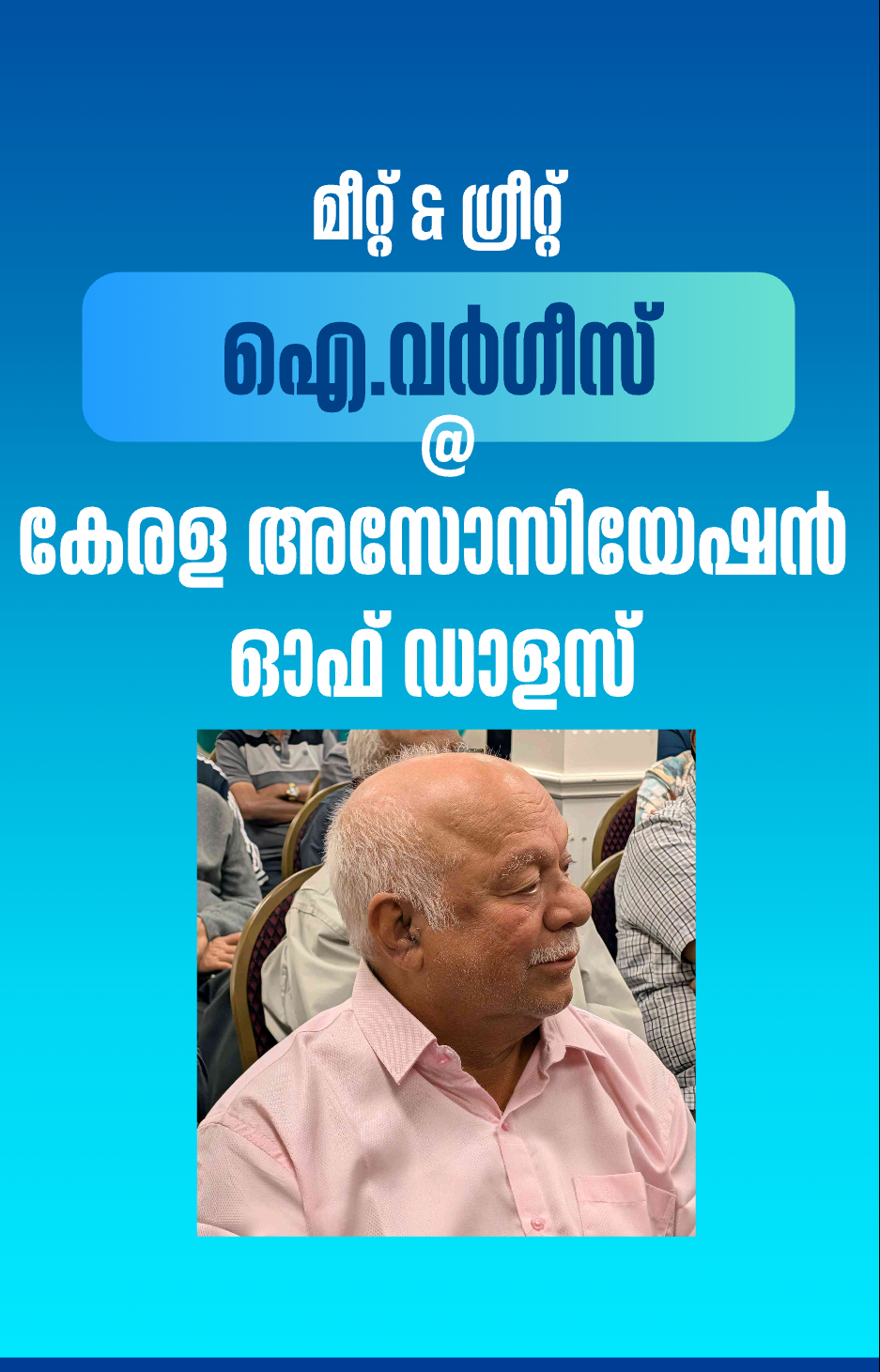 ഡാളസ് : 50 വർഷം പിന്നീടുന്ന കേരള അസോസിയേഷൻ ഓഫ് ഡാളസിന്റെ മുന്നണി പോരാളിയും സമാനതയില്ലാത്ത സംഘാടകനുമായ ഐ. വർഗീസിനു ഡാളസ് കേരള അസോസിയേഷൻ ഓഫീസിൽ മീറ്റ് & ഗ്രീറ്റ് സംഘടിപ്പിച്ചു.