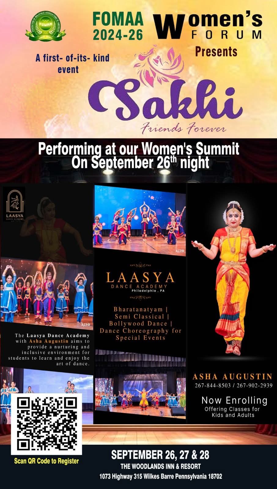 പെൻസിൽവേനിയ: അമേരിക്കൻ മലയാളികളുടെ അഭിമാന സംഘടനയായ ഫോമയുടെ പ്രവർത്തന ചരിത്രത്തിൽ ആദ്യമായി ഫോമ നാഷണൽ വുമൻസ് ഫോറം അണിയിച്ചൊരുക്കുന്ന ത്രിദിന വനിതാ മെഗാ സംഗമം, “സഖി – ഫ്രണ്ട്സ് ഫോറെവർ” എന്ന പേരിൽ വിമൻസ് സമ്മിറ്റ് സെപ്റ്റംബർ 26, 27, 28 തീയതികളിൽ, വിനോദസഞ്ചാരികളുടെ മനംകവർന്ന, പെൻസിൽവേനിയയിലെ പ്രശസ്തവും, പ്രകൃതിരമണീയവുമായ പോക്കനോസിലെ, വുഡ്ലാന്റ്സ് റിസോർട്ടിൽവച്ചു നടത്തപ്പെടുന്നു.