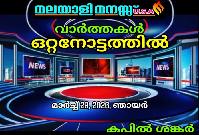Homeഅമേരിക്ക📱വാർത്തകൾ ഒറ്റനോട്ടത്തിൽ📱 - 2026 | മാർച്ച് 29 | ഞായർ ✍ കപിൽ ശങ്കർ