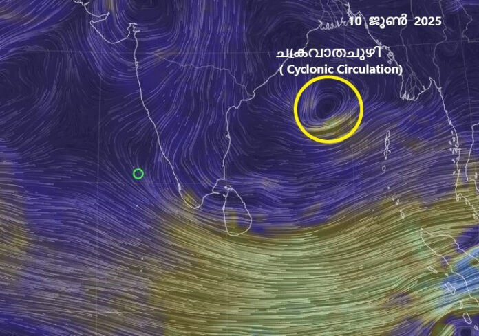 ജൂൺ 12 മുതൽ കേരളത്തിന് മുകളിൽ പടിഞ്ഞാറൻ/വടക്കു പടിഞ്ഞാറൻ കാറ്റ് ശക്തമാകാൻ സാധ്യത. വടക്കു പടിഞ്ഞാറൻ ബംഗാൾ ഉൾക്കടൽ അതിനോട് ചേർന്നുള്ള ഒഡിഷയുടെ വടക്കൻതീരം, ഗംഗതട പശ്ചിമ ബംഗാൾ എന്നിവയുടെ മുകളിലായി ചക്രവാതചുഴി സ്ഥിതിചെയ്യുന്നു