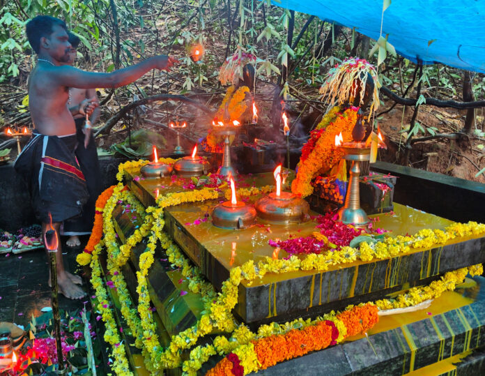 കോന്നി :കർക്കടകത്തിലെ ആയില്യത്തോട് അനുബന്ധിച്ച് കാവിന്റെ കാവലാളുകളായ അഷ്ട നാഗങ്ങൾക്ക് കോന്നി കല്ലേലി ഊരാളി അപ്പൂപ്പൻ കാവിൽ (മൂലസ്ഥാനം) നാഗ പൂജകൾ സമർപ്പിച്ചു.